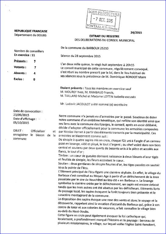 Extrait du Registre des Délibérations du 28 septembre 2015 (1/2).