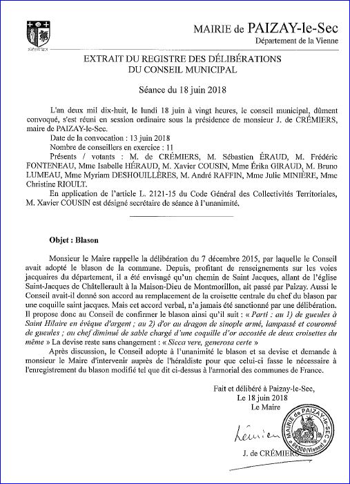 Extrait du registre des Délibérations du 18 juin 2018.