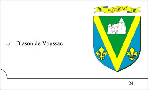 (2013) De sinople au château du lieu d'argent; chaussé d'azur chargé de deux fleurs de lis d'or; au chevron renversé d'or brochant sur la partition.