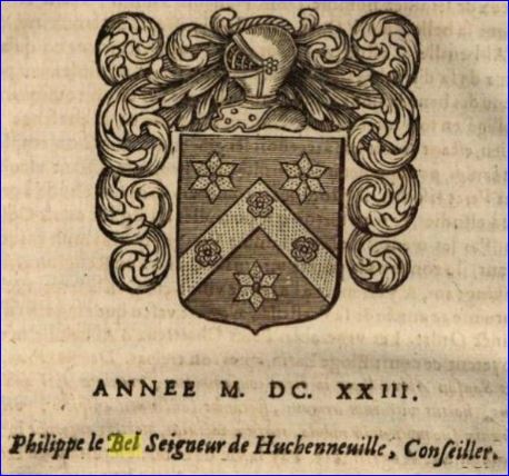 Les armes de Philippe Le Bel d'Huchenneville, seigneur d'Huchenneville et conseiller du roi, plusieurs fois maïeur d'Abbeville de 1623 à 1635.