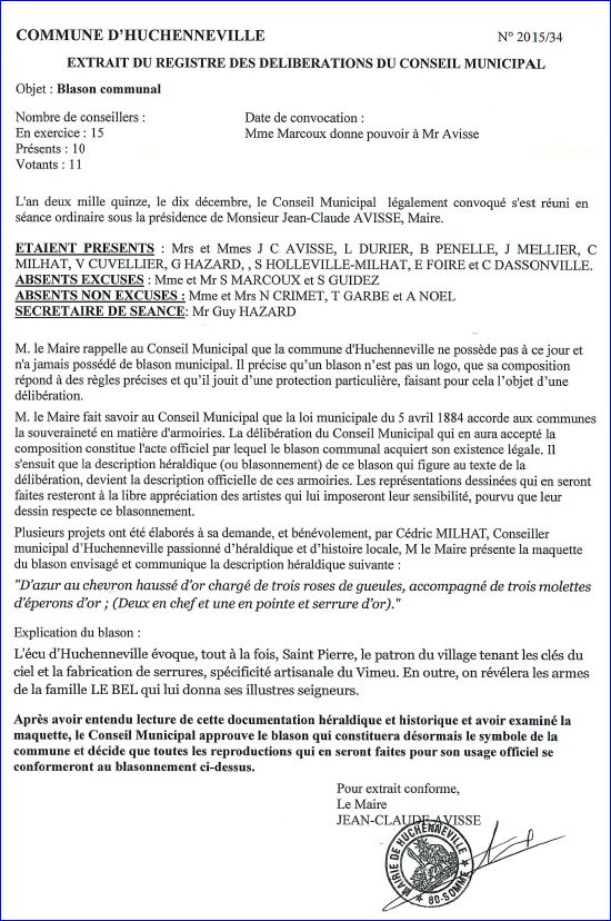 Extrait du Registre des Délibérations du 10 décembre 2015.