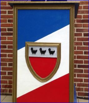 De gueules au chef d'argent chargé de trois merlettes de sable.