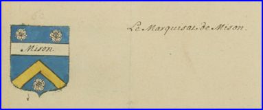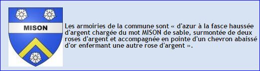 D'azur à la fasce haussée d'argent chargée de l'inscription « MISON »en lettres capitales de sable, accompagnée en chef de deux roses d'argent et en pointe d'un chevron abaissé d'or soutenu d'une rose d'argent.