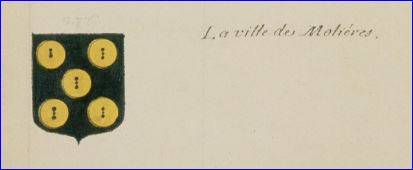 De sable à cinq meules de moulin d'or ordonnées en sautoir.