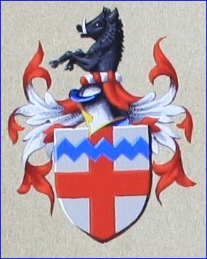 D'argent à la croix de gueules, à la burelle d'azur, vivrée de trois pièces, brochant en chef.