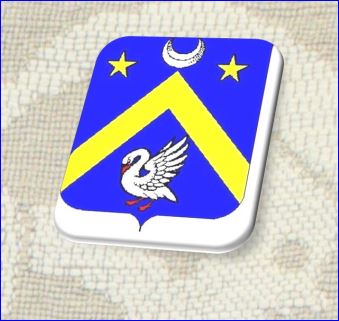 D'azur au chevron d'or sommé d'un croissant d'argent, accompagné en chef de deux étoiles d'or et en pointe d'un cygne d'argent becqué et membré de gueules.