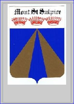 D'azur à deux pointes d'or, posées en chevron et appointées en chef; au chef d'argent chargé de trois couronnes comtales de gueules surmontées de l'inscription « Mont St Sulpice » en lettres de sable.
