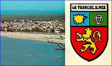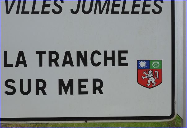 De gueules au lion d'or; au chef parti au 1er d'azur au soleil non figuré d'or, au 2e de sinople à deux coeurs vidés et entravaillés, couronnés et croisetés d'argent.