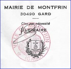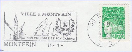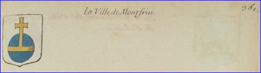 D'or au monde d'azur, cintré et croisé d'argent, soutenu de l'inscription MONSFRINUS en lettres capitales de sable.