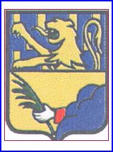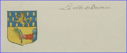 Coupé: au 1er d'azur semé de billettes d'or au lion issant du même, au 2e d'or au senestrochère au naturel, vêtu de gueules, mouvant d'une nuée d'azur, et tenant une palme de sinople.