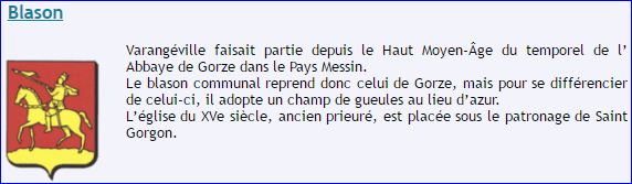 De gueules à saint Gorgon à cheval armé de pied en cap d'or, posé sur une terrasse du même.
