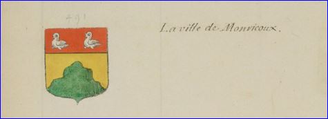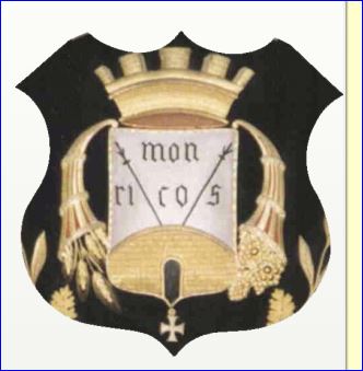 D'azur au pont d'or, maçonné et ouvert de sable, à deux lances d'or mouvant du pont, celle de dextre en bande et celle de senestre en barre, accompagnées des inscriptions du même «ri», «cos» et «s» rangées en fasce et «mon» en chef.