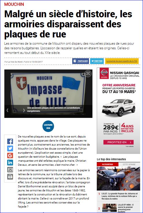 Article de presse La Voix du Nord du 13 mars 2017, (1/2) (site du journal).