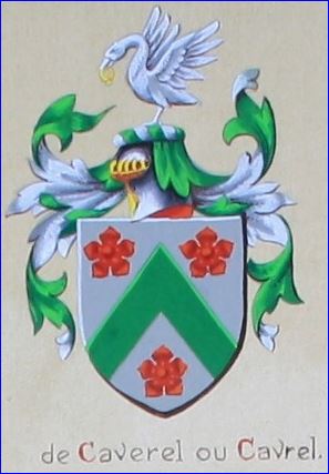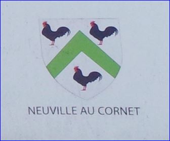 D'argent au chevron de sinople accompagné de trois coqs de sable, crêtés, barbés, becqués et membrés de gueules.