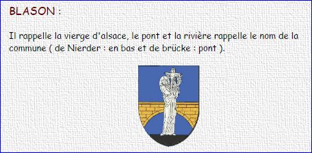 D'azur à Notre Dame d'argent tenant l'Enfant Jésus du même, posée sur une terrasse de sable et brochant sur un pont d'une arche d'or, maçonné de sable.
