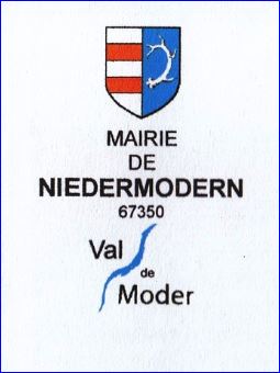 Parti: au 1er d'argent à deux fasces de gueules, au 2e d'azur à la demie ramure d'argent, chevillée à senestre, posée en pal et ployée vers la dextre.