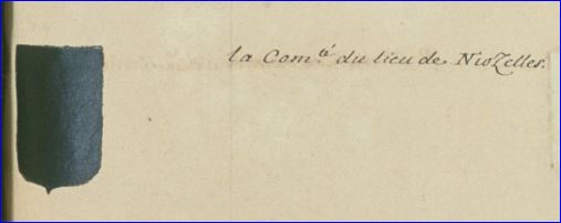 De sable à l'inscription « NIOZELLES » en lettres capitales d'argent rangées en fasce.