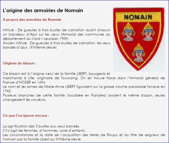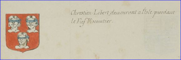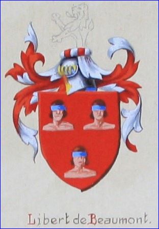 De gueules à trois bustes de carnation, chevelés d'or, ayant chacun un bandeau d'azur sur les yeux.
