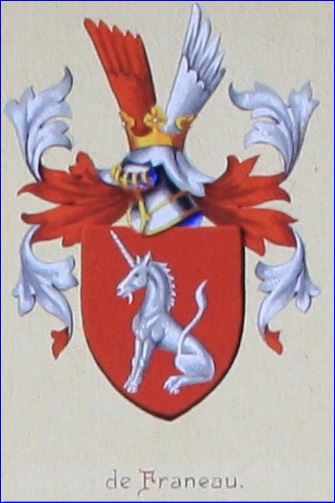 De gueules à la licorne assise d'argent, la queue relevée sur le flanc gauche.