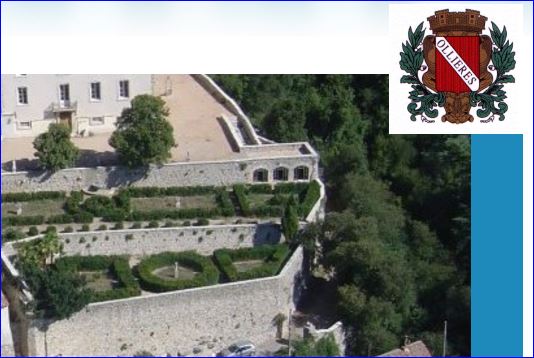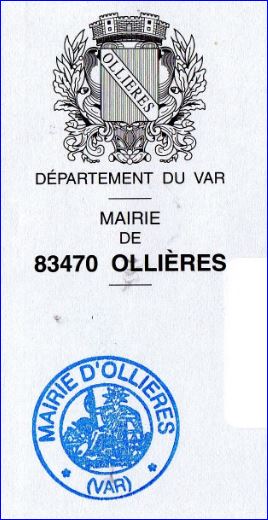 De gueules à la bande d'argent chargée de l'inscription « OLLIÈRES » en lettres capitales de sable.