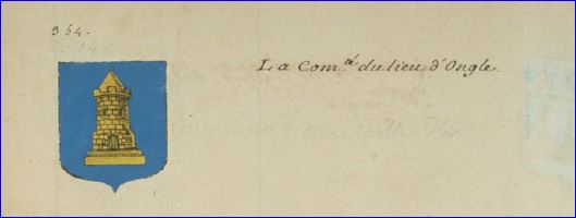 D'azur à la tour d'or, maçonnée et ouverte de sable, accostée de deux étoiles d'or, posée sur une champagne du même chargée de l'inscription « ONGLES » en lettres capitales de sable.