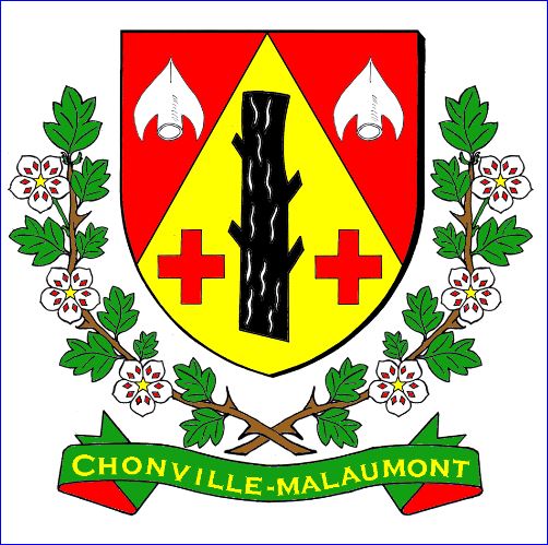 (2016) D'or à l'écot de sable, accosté de deux croisettes de gueules; chapé de gueules à deux phéons d'argent.
