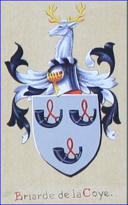 D'argent à trois cors de sable, liés de gueules, virolés d'or, les pavillons à dextre.