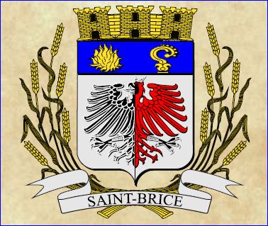 (1999) Mi-parti: au 1er d'argent à l'aigle de sable; au 2e d'argent à l'aigle de gueules, membrée, becquée et couronnée de sable; au chef d'azur chargé d'un feu d'or à dextre et d'une crosse contournée issante contournée du même à senestre.