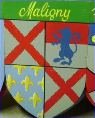 Écartelé: aux 1er et 4e d'argent au sautoir engrelé de gueules, au 2e d'argent au chef de gueules et au lion d'azur brochant, au 3e d'azur semé de fleurs de lis d'or.