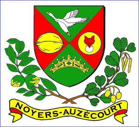 (2016) Écartelé en sautoir: au 1er de sinople à l'oie volant d'argent allumée, becquée et membrée d'or posée en bande, au 2e de gueules à la noix d'or, au 3e de gueules au besant d'or chargé d’un masque de renard de gueules tenant un fromage d'argent, au 4e de sinople au diadème d'or.