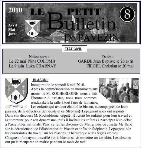 Bulletin municipal No 8, avril-mai-juin 2010.
