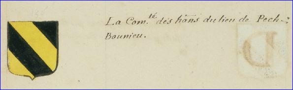 Bandé de sable et d'or de quatre pièces, à l'écu mouvant de l'angle senestre et brochant, d'or à l'arbre de sinople soutenu d'un croissant de gueules et au chef d'azur chargé de trois étoiles d'argent.