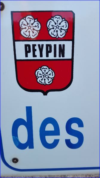 De gueules à la fasce d'argent chargée de l'inscription PEIPIN [ou PEYPIN] en lettres capitales de sable, accompagnée de trois roses d'argent.