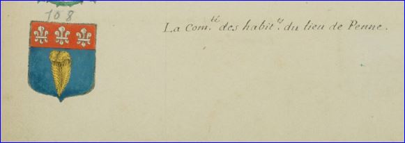 D'azur à la plume d'or posée en pal; au chef cousu de gueules chargé de trois fleurs de lis d'argent.
