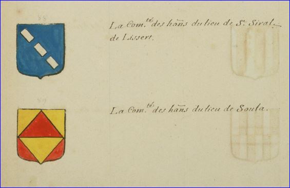 Blasons de Saint-Cirac (hameau de la commune) et de Soula.