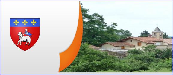 De gueules à l'agneau pascal d'argent portant une croix haute du même à la banderole d'azur chargée d'une croisette pattée d'or; au chef cousu d'azur chargé de trois fleurs de lis d'or.