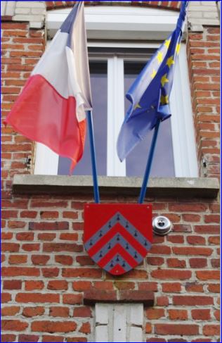 Blason sue la façade de la mairie.