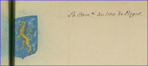 D'azur au lion d'or, armé et lampassé de gueules, accompagné à dextre de la pointe des lettres capitales P et G du même.