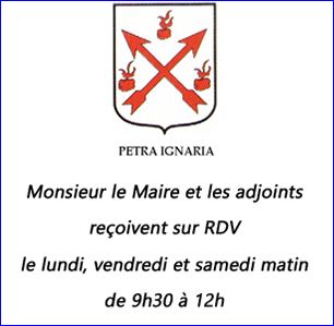 D'argent à deux flèches de gueules passées en sautoir, cantonnées en chef et aux flancs de trois pierres enflammées du même.