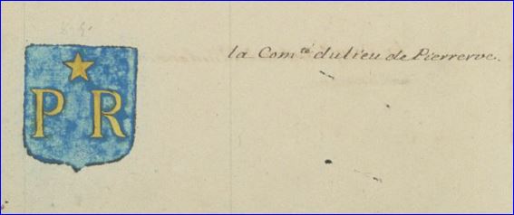 D'azur lettres capitales P et R d'or, accompagnées en chef d'une étoile du même.