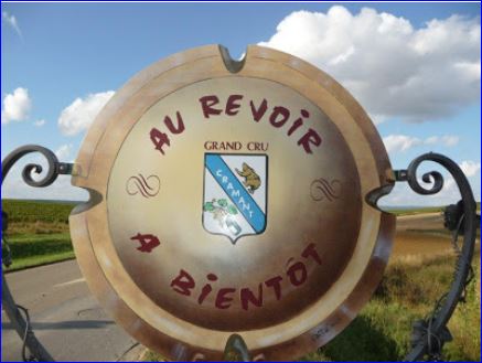 D'argent à la bande d'azur accompagnée en chef d'un ours au naturel passant en bande et en pointe d'une bouteille de champagne au naturel, étiquetée du champ, posée en bande et brochant sur un rinceau de vigne, tigé et feuillé de sinople, fruité de deux grappes de pourpre.