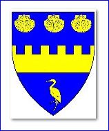 (2016) D'azur à la fasce crénelée d'or accompagnée de trois coquille rangées en chef et d'un oiseau en pointe, le tout du même.