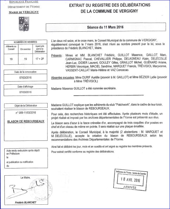Extrait du registre des délibérations du 11 mars 2016.