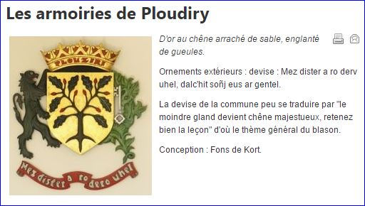 Devise: « mez dister a ro derv uhel, dalc'hit soñj eus ar gentel» (le moindre gland devient chêne majestueux, retenez bien la leçon).