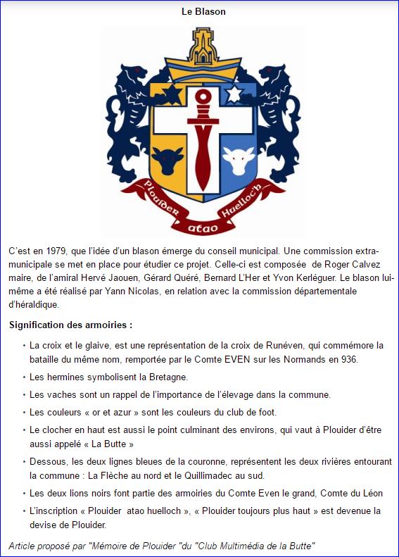 Devise: « Plouider atao huelloc'h » (Plouider toujours plus haut).