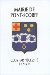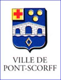 D'azur au pont de trois arches d'argent, maçonné de sable, les pieds des arches brochant sur une burelle d'argent ondée en pointe et accompagné en chef senestre de trois besants d'or ordonnés 2 et 1, et en pointe d'une mâcle d'or; au franc-canton d'or chargé d'une croisette de gueules.