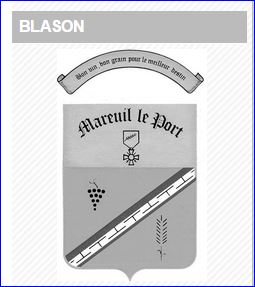 De sinople à la barre cousue d'azur chargée d'un bâton d'argent surchargé d'une double traverse potencée et de contre-potencée de sable, accompagnée, en chef, d'une grappe de raisin tigée du même et, en pointe, d'un épi de blé de sable; le tout sommé d'un chef d'or.