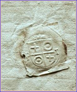 Écartelé: aux 1er et 4e de gueules à la croix de Malte d'argent, aux 2e et 3e d'argent au besant d'or chargé d'un annelet du champ.