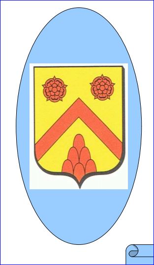 D'or au chevron, accompagné en chef de deux roses et en pointe d'un mont de six coupeaux, le tout de gueules.