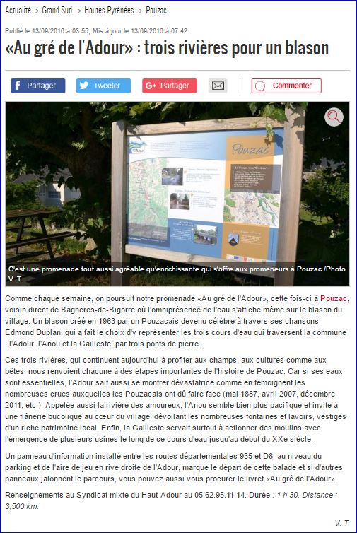 Article de presse La Dépêche du 13 septembre 2016, (site du journal).